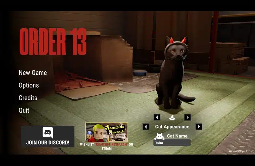 One might think the cat is there simply for aesthetics, because before beginning, the player can change their cat from its fur down to its head accessory, and name. In Order 13, the cat is your companion; it depends on your survival. With each night of orders completed, players should make sure they take care of their cat with toys and food. Don’t worry if they disappear, they’ll be back! I made the mistake of not getting back in time, and poor Tuba died of loneliness. So make sure the cat is happy, and each item will tell how much happiness they restore. As days progress, the happiness meter will grow.