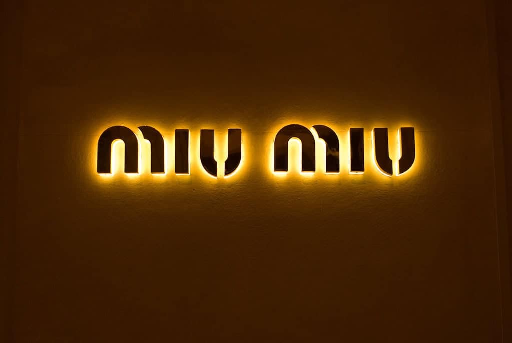 The Miu Miu brand was started by Miuccia Prada in 1993. The brand is a component of the Prada Group. The Prada Group states: “Miu Miu is the most unrestrained portrayal of Miuccia Prada’s creativity.” The creative design process of this brand is purposefully spontaneous. The aesthetic thoughtfully pairs contradictory influences. An emphasis on elegance, for instance, balances with a sense of play.