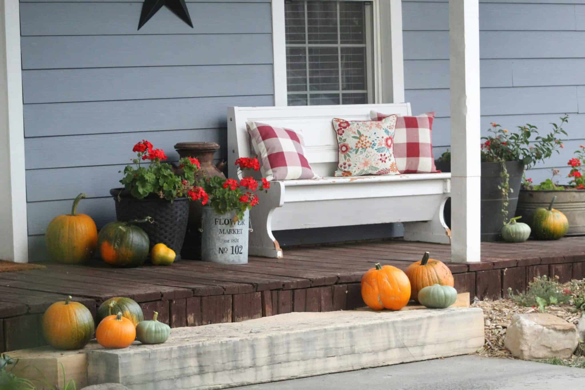 Start with your throw pillows and blankets. Swap those summery brights for rich burnt oranges, deep burgundies, and warm mustard yellows. Trust me, this one change will make your neighbors do a double-take. I once watched my friend transform her entire porch vibe just by switching out five pillow covers—five! The woman is basically a magician.